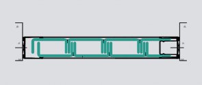 Горизонтальный монтажГоризонтальный монтаж. Один из вариантов установки стеклопрофилита. Может использоваться, например, если высота проема под монтаж стеклопрофилита превышает 7 метров. |